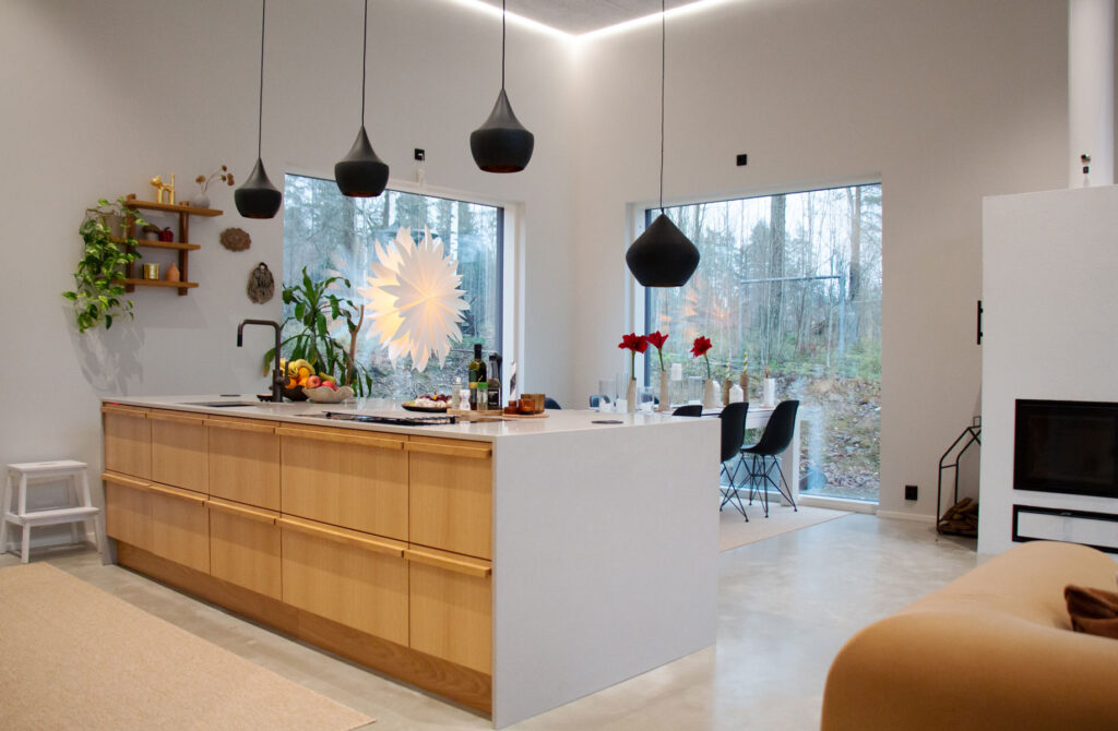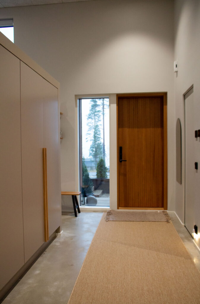 Myös sisäilma, lämpö ja kodin yleinen “tuntuma” vastasivat odotuksia. Talon massiivinen rakenne tuo kestävyyttä ja elinkaariedullisuutta – ja tämä oli yksi syy, jonka takia materiaalivalinta tuntui alusta asti perustellulta.