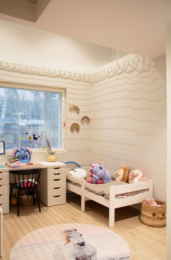 Arki asettui taloon vaivattomasti. Alue on uusi ja kaunis, ja lapsille löytyi nopeasti ystäviä. Luonto ja ulkoilureitit ovat lähellä, mikä koetaan suurena plussana, vaikka palvelut eivät aivan vierestä löydykään.