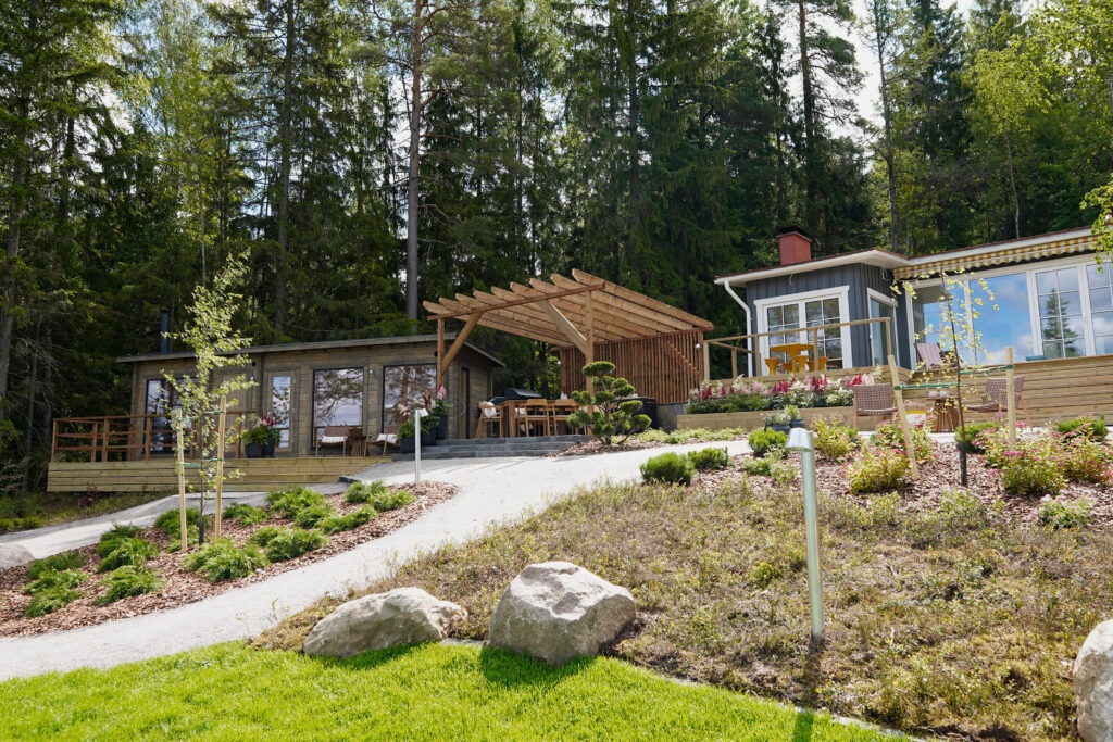 Huvila & Huussi -ohjelman jaksossa “Risuisen rinnetontin täysremontti” piha suunniteltiin ja toteutettiin täysin uudelleen ja paikasta, jossa liikkuminen oli vaikeaa, syntyi toimiva ja kutsuva kokonaisuus.