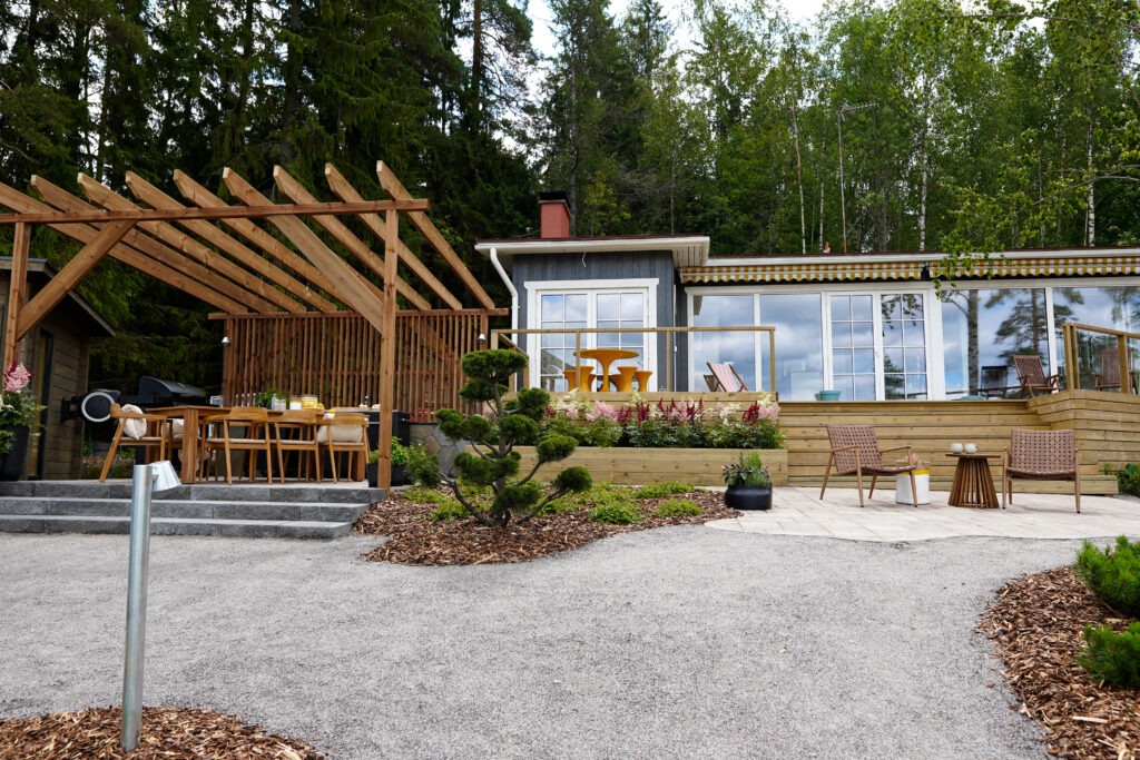 Hyvin suunniteltu piha syntyy, kun materiaalit, muodot ja ympäristö keskustelevat keskenään. Tässä kohteessa ratkaisut eivät ole irrallisia valintoja, vaan osa harkittua kokonaisuutta.