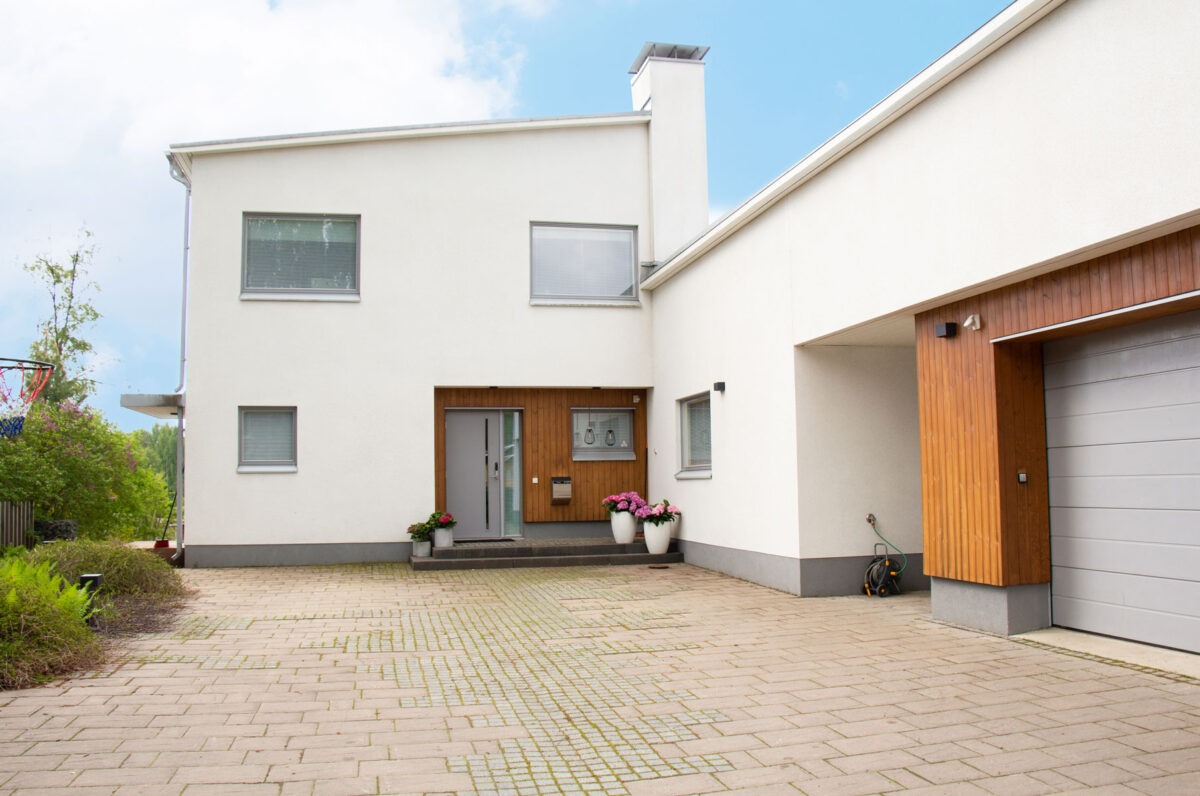 Talon on suunnitellut arkkitehti Joonas Väkiparta. Rakennusvaiheen tila- ja sisustussuunnittelussa oli apuna Joonas Korhonen Nurkanvaltaaja Oy:stä. Lopputulos on harmoninen ja käytännöllinen kokonaisuus: reilu 200 neliötä, kolmessa kerroksessa. Julkisivua hallitsee vaalea rappaus, jota elävöittävät kauniit puurimoitukset – yksityiskohta, joka tuo kivitalon ilmeeseen lämpöä ja persoonallista rytmiä. Koti ei ole vain jykevä, vaan myös lempeä katsoa.
